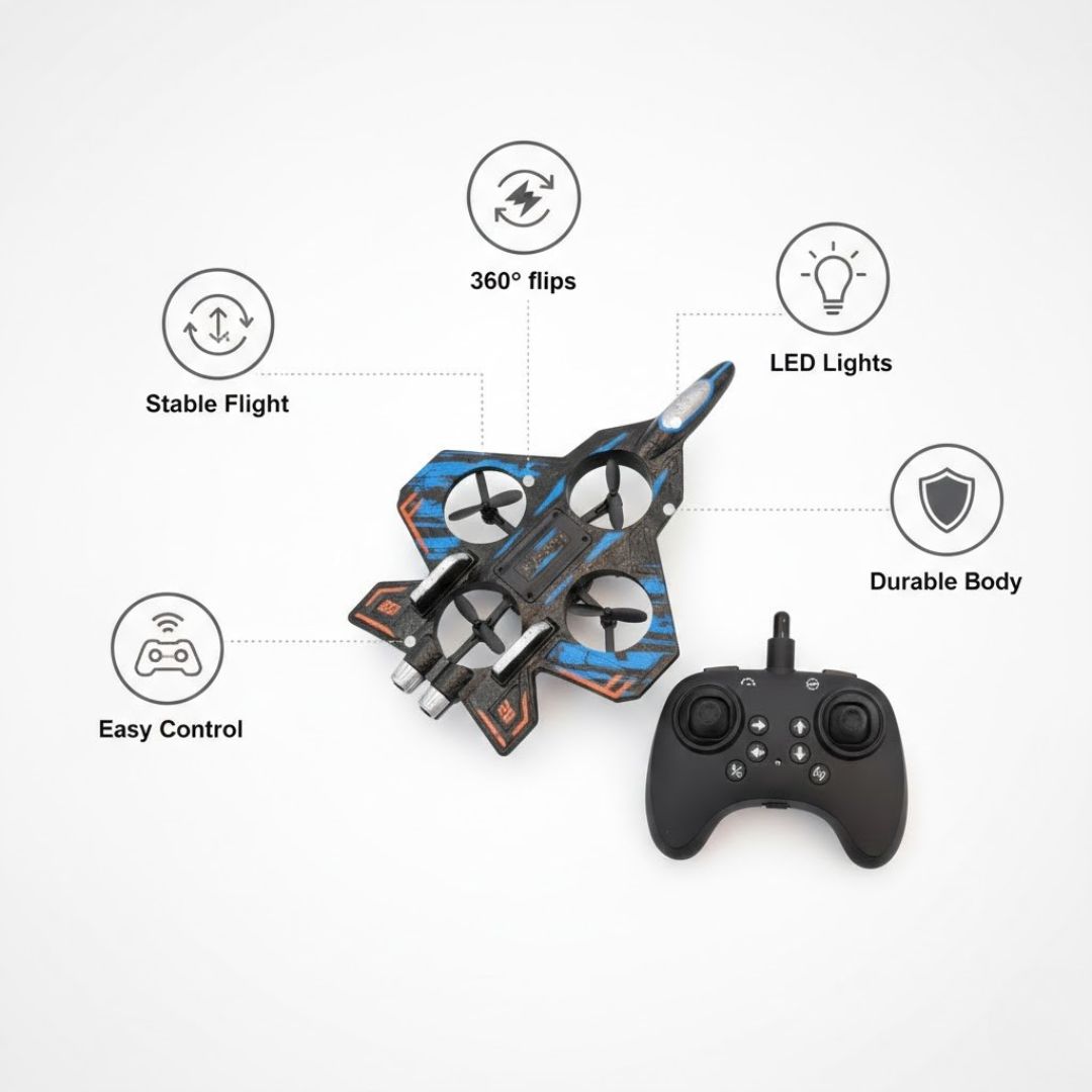 ✈️ RC Flying Jet Drone Toy: Stylish combat flight jet design with smooth flying action for fun playtime.
